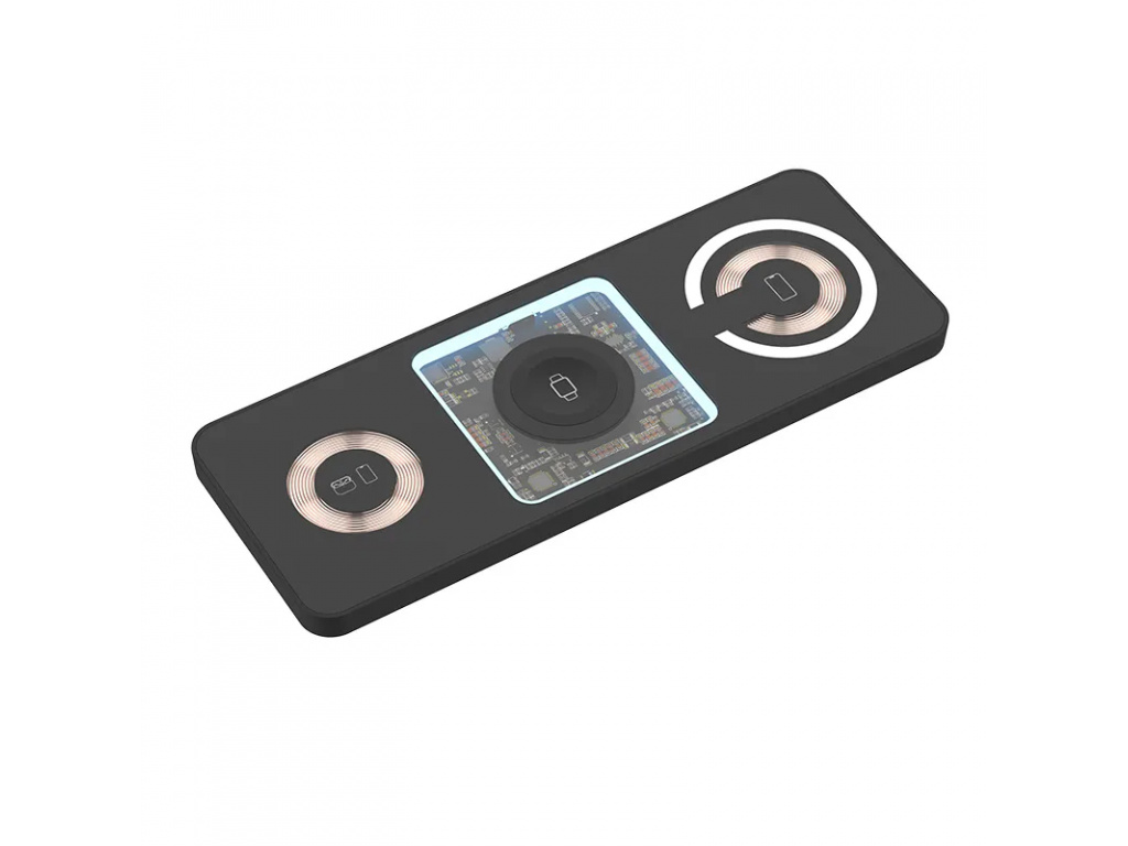 - Výstupy jsou 3x Qi (iPhone + ploška pro hodinky Apple Watch uprostřed + ploška na sluchátka Airpods / Airpods Pro nebo iPhone)