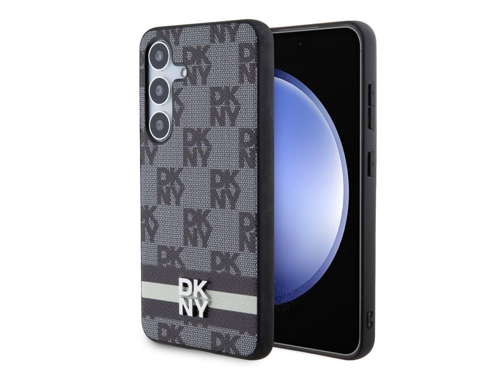 DKNY PU Leather Checkered Pattern and Stripe Kožený Kryt pro Samsung Galaxy S24 Černý