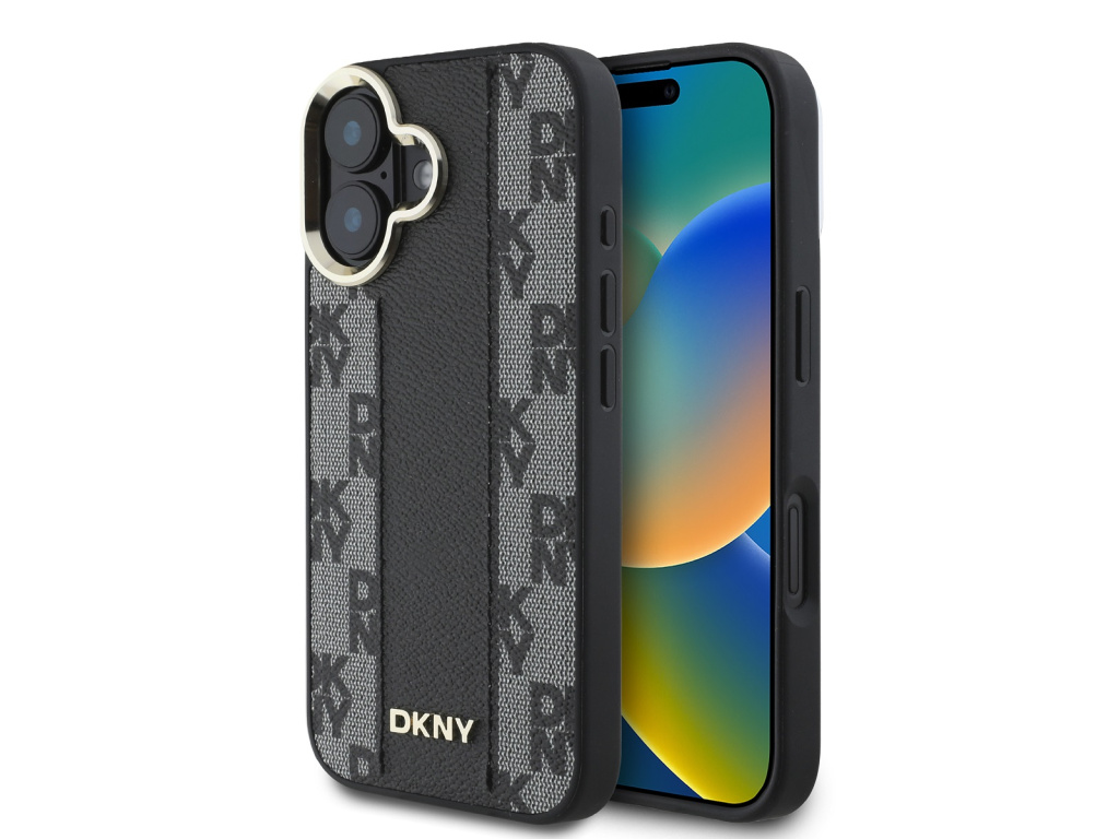 DKNY PU Leather Checkered Pattern MagSafe Zadní Kryt pro iPhone 16/16 Plus