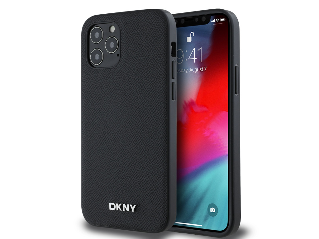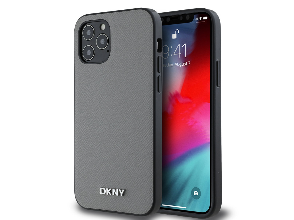 DKNY PU Leather Silver Metal Logo MagSafe Zadní Kryt pro iPhone 12/12 Pro