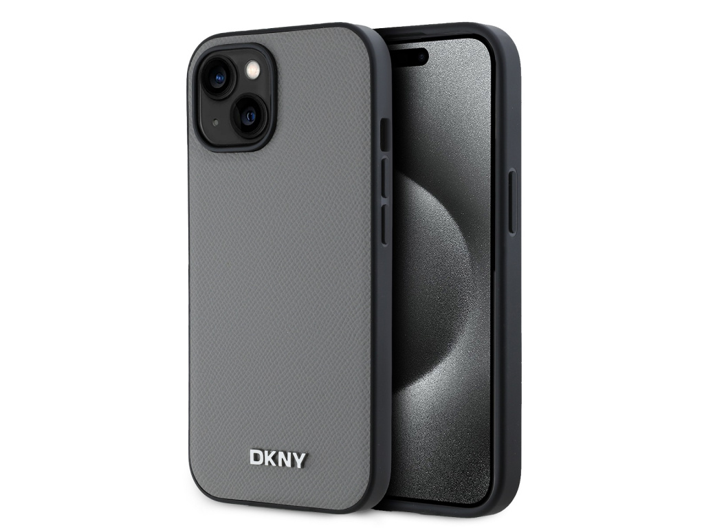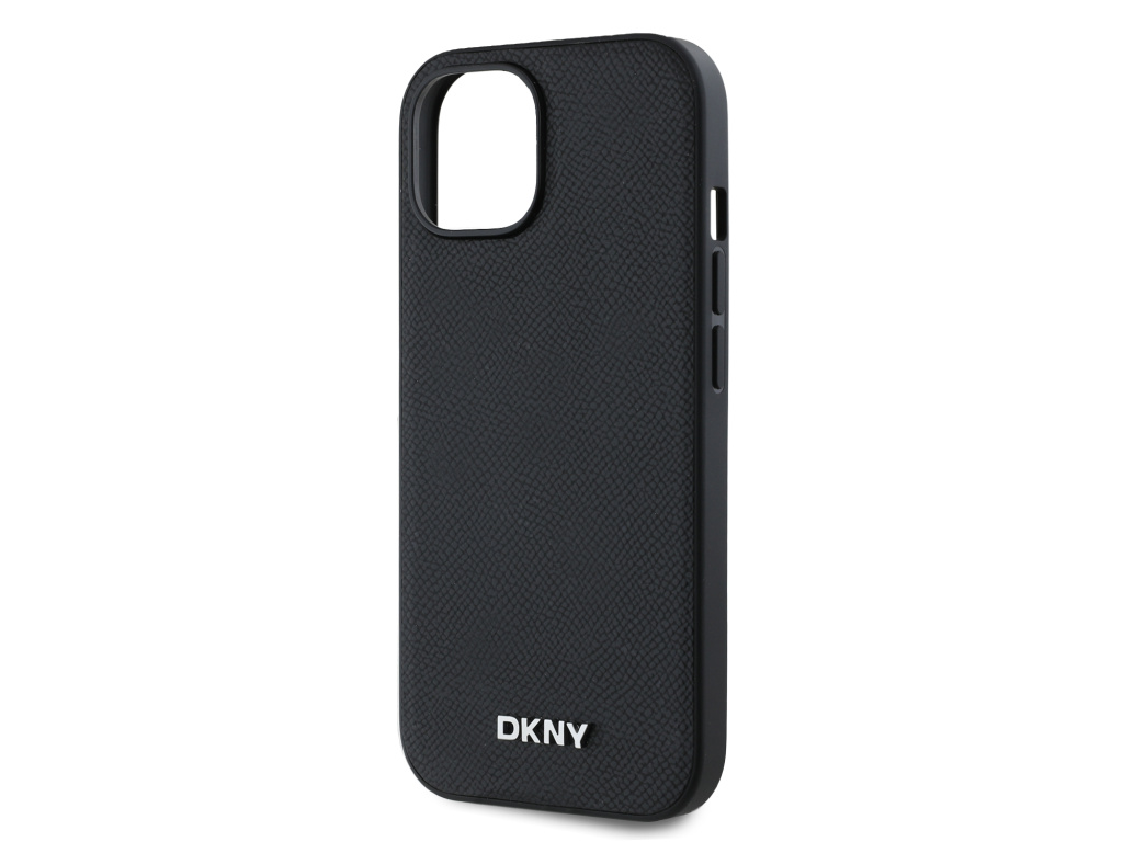 DKNY PU Leather Silver Metal Logo MagSafe Zadní Kryt pro iPhone 14