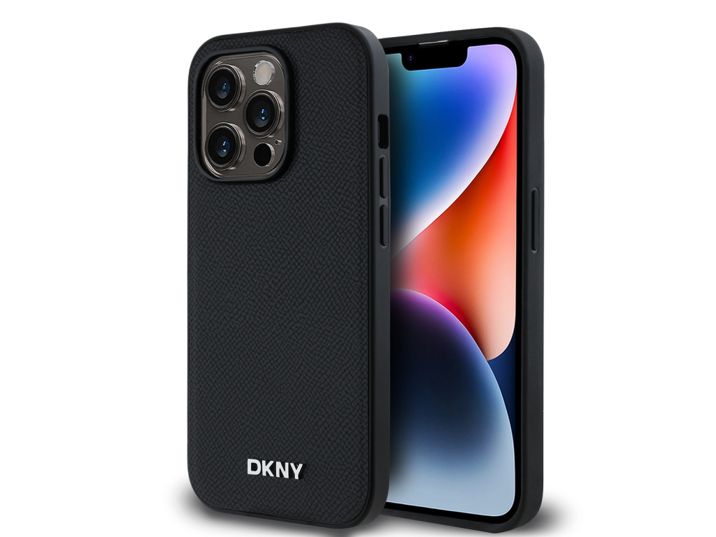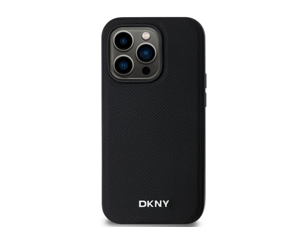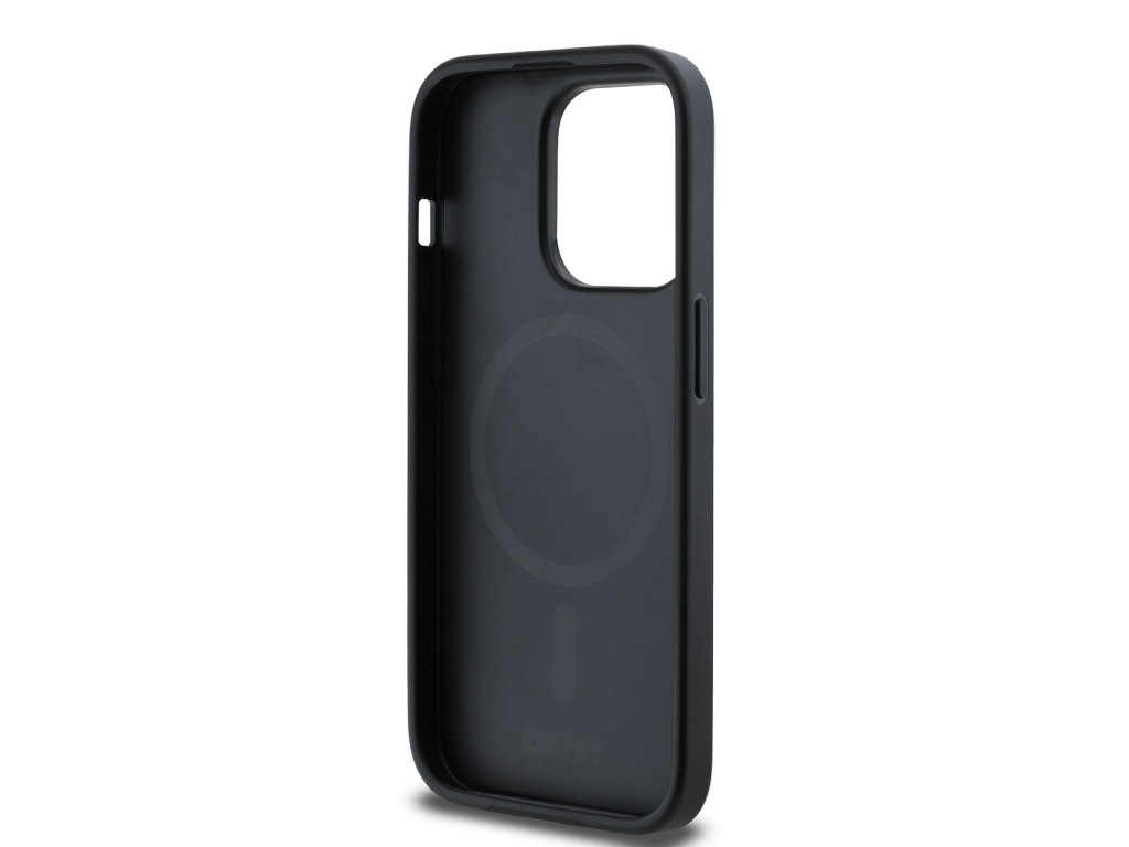 DKNY PU Leather Silver Metal Logo MagSafe Zadní Kryt pro iPhone 15 Pro