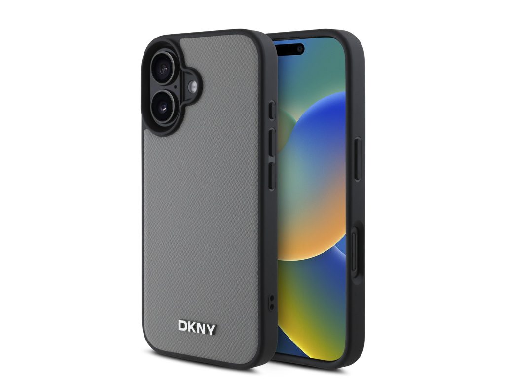 DKNY PU Leather Silver Metal Logo MagSafe Zadní Kryt pro iPhone 16