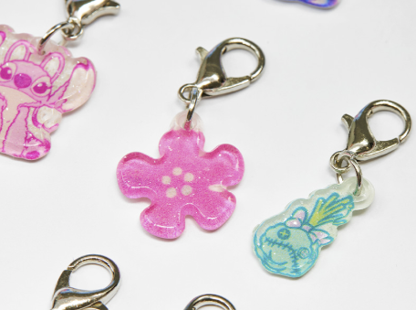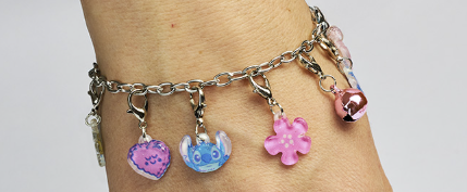 Různé přívěsky tematicky laděné s motivy Stitch, jako jsou například květiny, ovoce (např. ananas), hudební nástroje či samotný Stitch v různých pózách