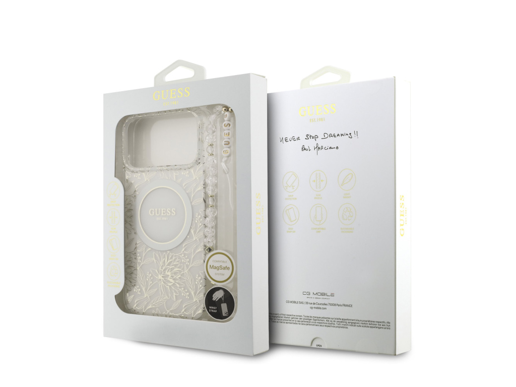 Guess IML Flowers Allover Strap MagSafe Zadní Kryt pro iPhone 17 Pro Max