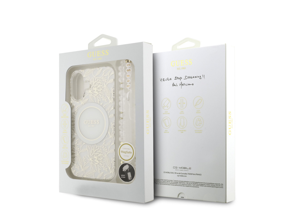 Guess IML Flowers Allover Strap MagSafe Zadní Kryt pro iPhone 17