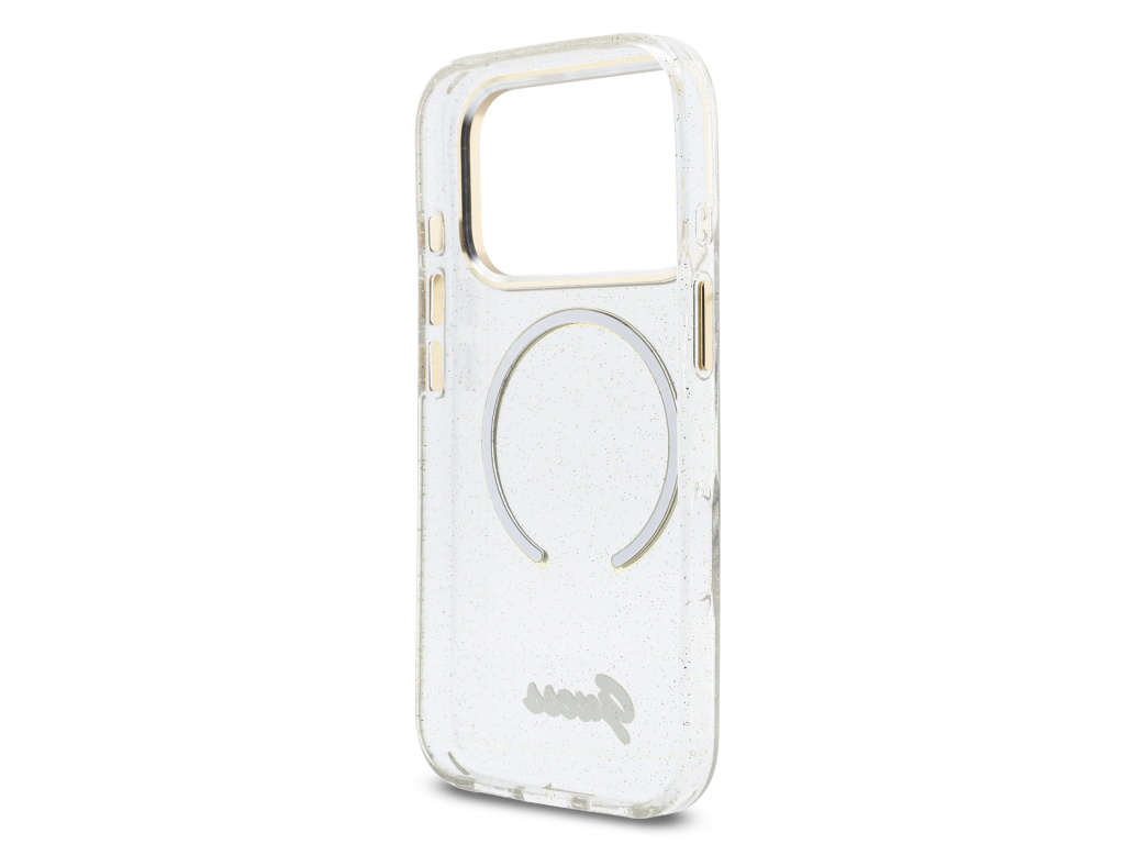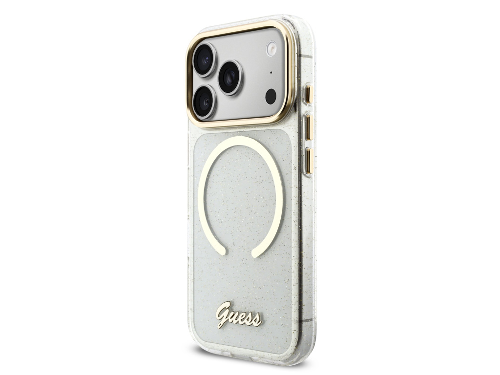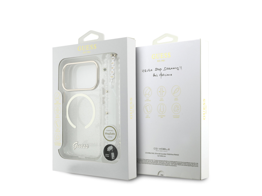 Guess IML Glitter Script Strap MagSafe Zadní Kryt pro iPhone 17 Pro