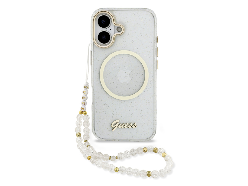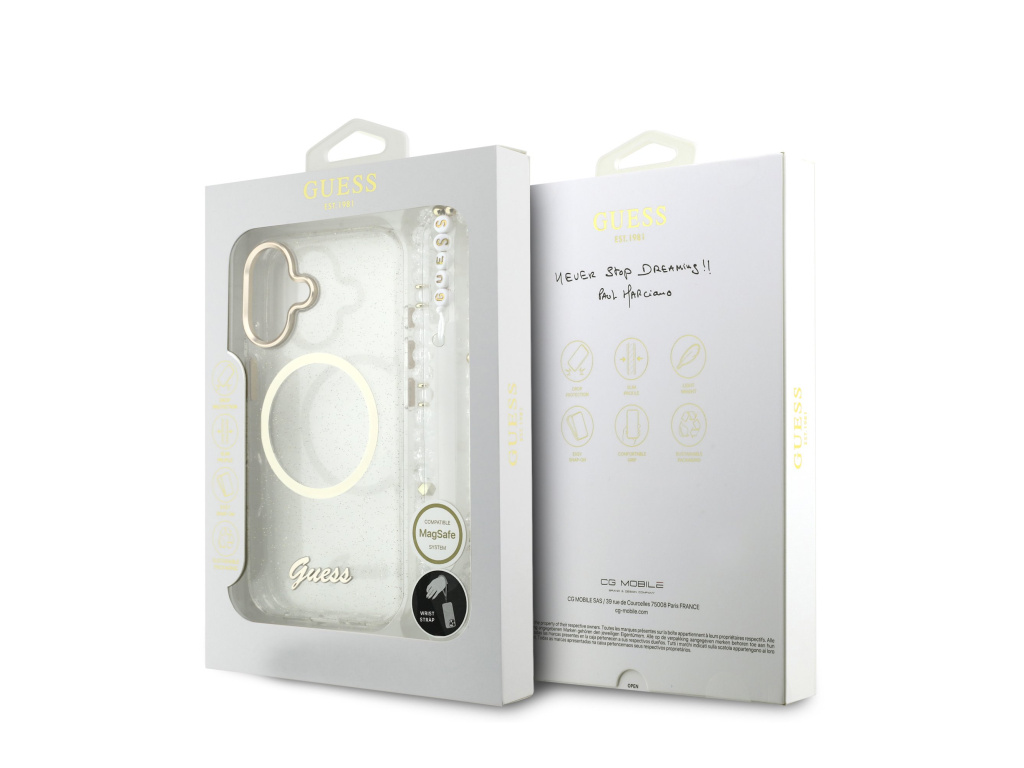 Guess IML Glitter Script Strap MagSafe Zadní Kryt pro iPhone 17