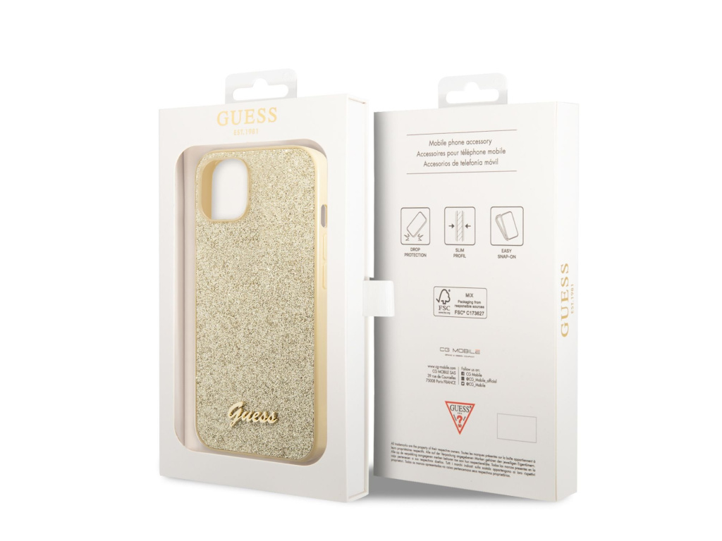 Guess PC/TPU Glitter Flakes Metal Logo Zadní kryt iPhone 14 Plus zlatá