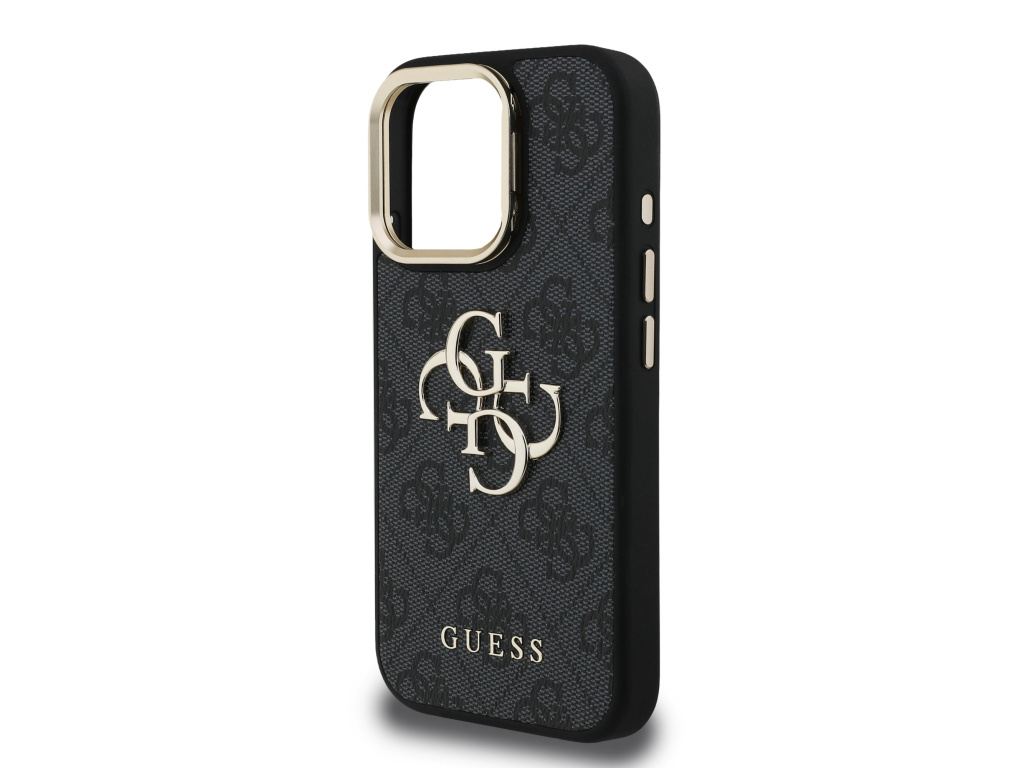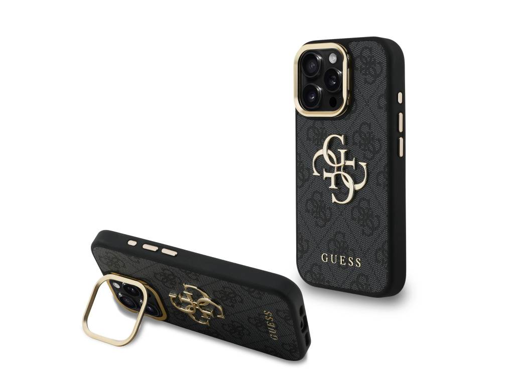 Guess PU 4G Metal Logo Stand Camera Frame Zadní Kryt pro iPhone 15 Pro Max