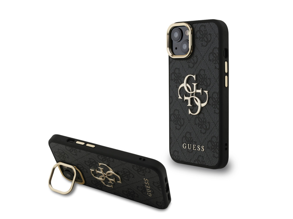 Guess PU 4G Metal Logo Stand Camera Frame Zadní Kryt pro iPhone 15