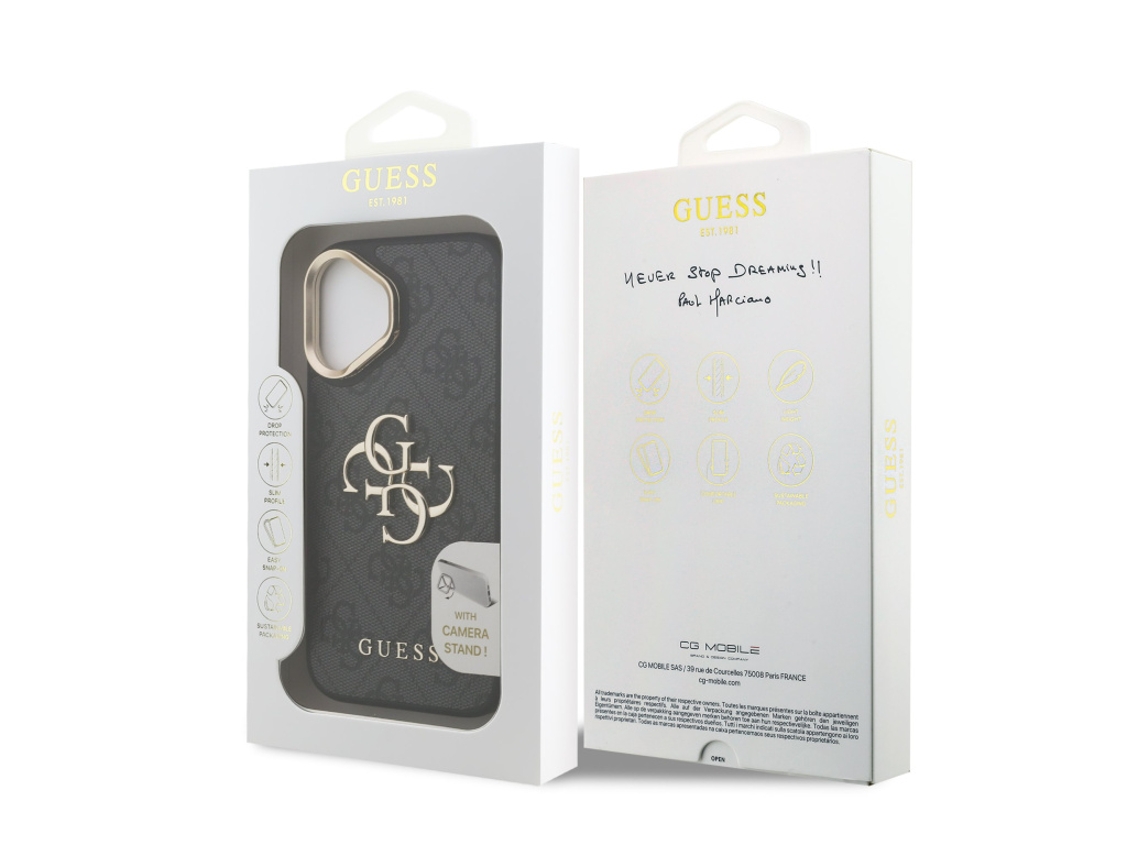 Guess PU 4G Metal Logo Stand Camera Frame Zadní Kryt pro iPhone 16