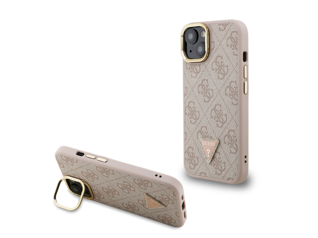 Prémiový zadní kryt Guess PU 4G Strass Triangle Logo Stand Camera Frame je vyrobený z pružného a pevného PU materiálu s povrchovou úpravou z PU kůže a nabízí tak nejen skvělou ochranu telefonu, ale také pohodlí při používání.