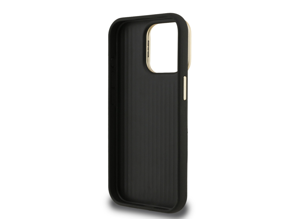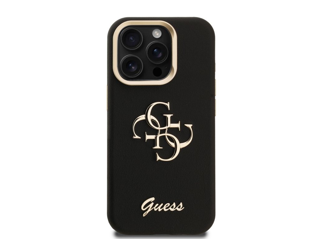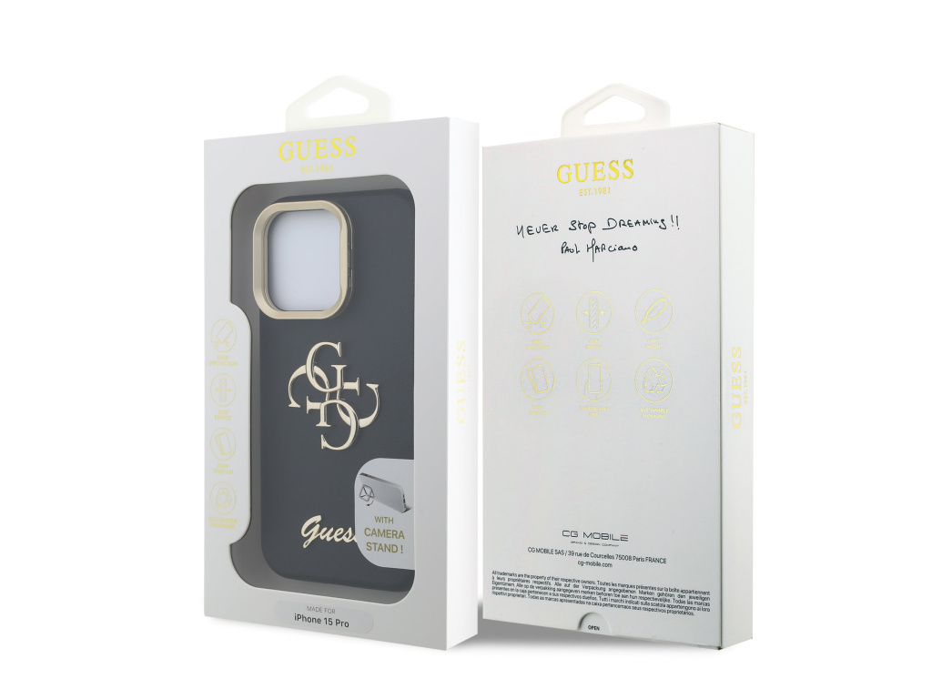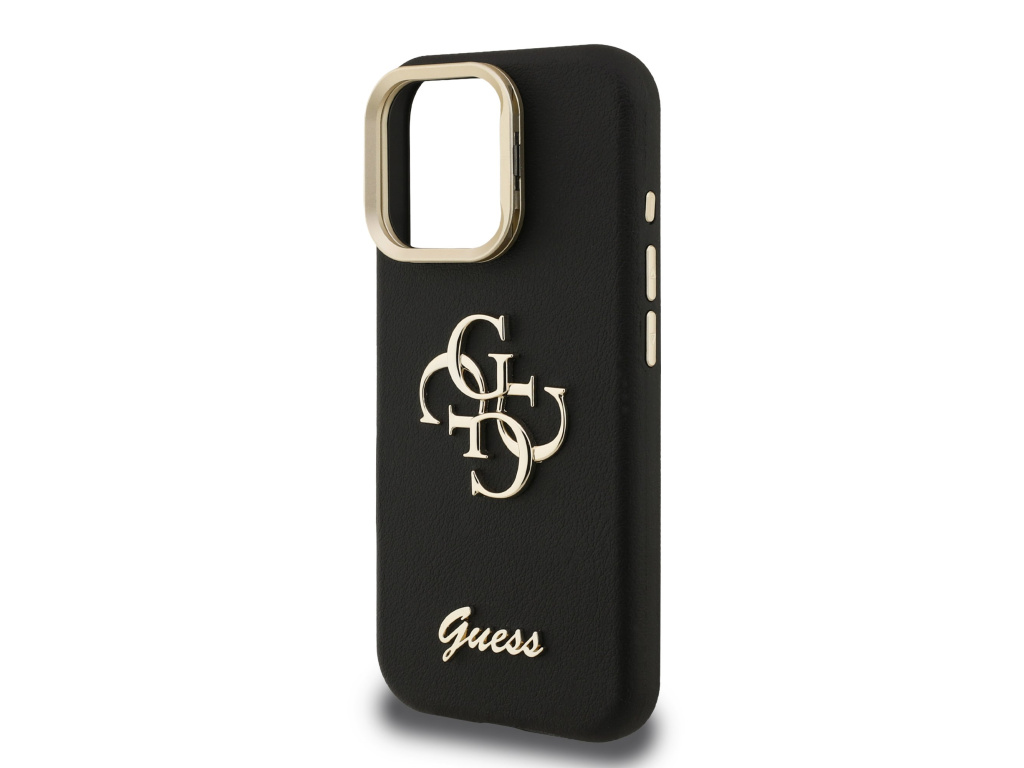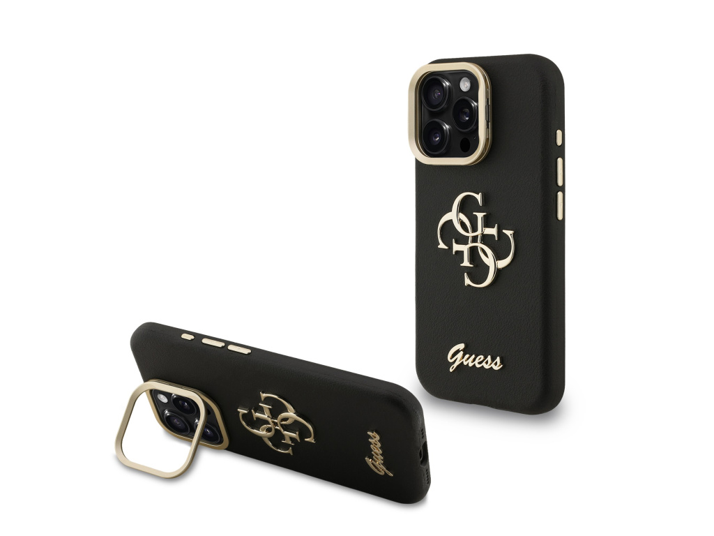 Guess PU Grained 4G Logo Stand Camera Frame Zadní Kryt pro iPhone 16 Pro