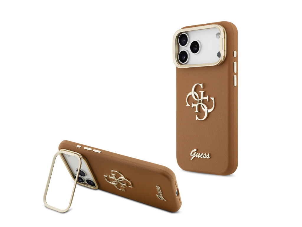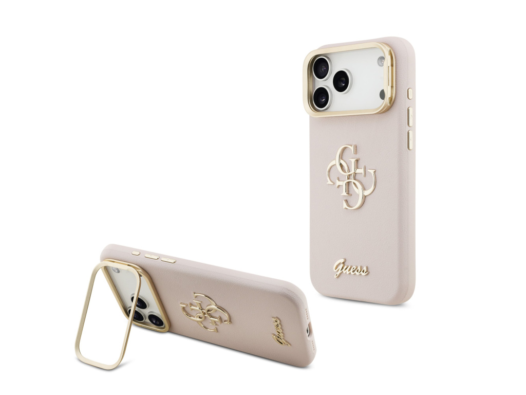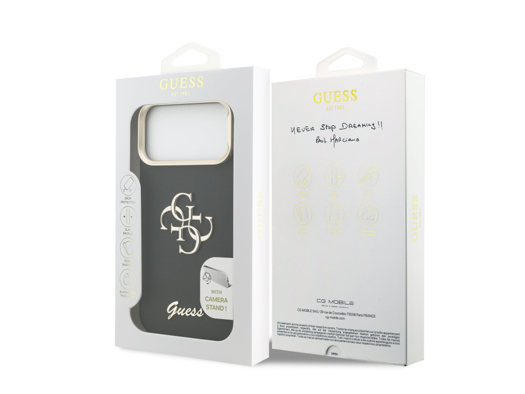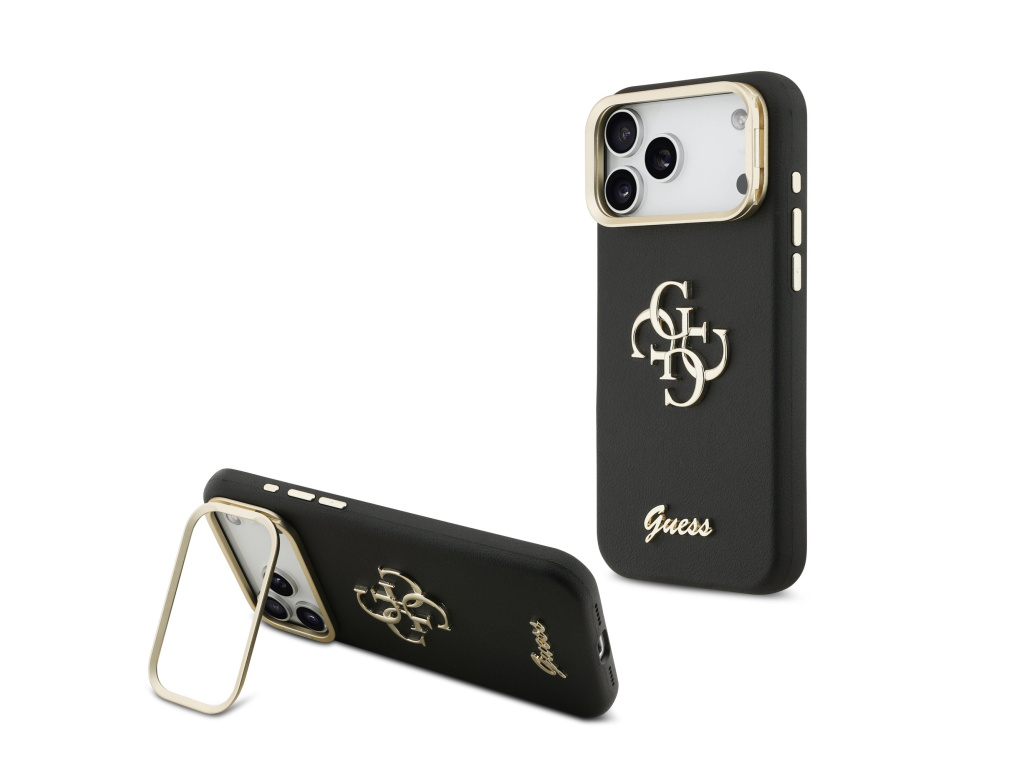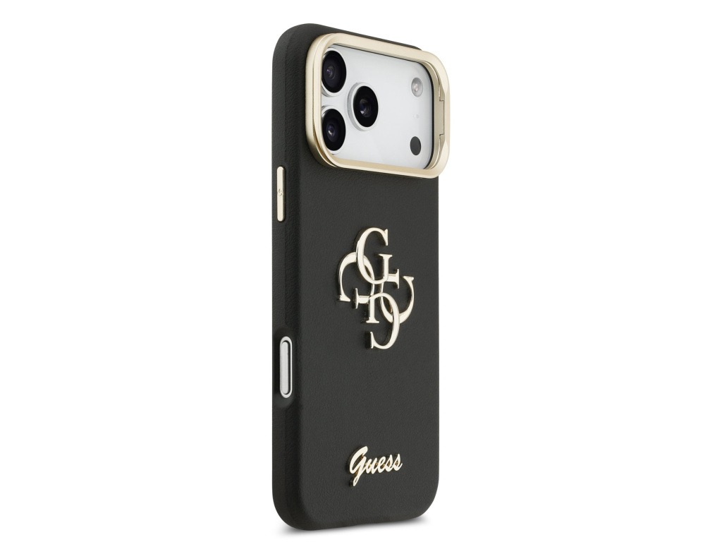 Guess PU Grained 4G Logo Stand Camera Frame Zadní Kryt pro iPhone 17 Pro Max