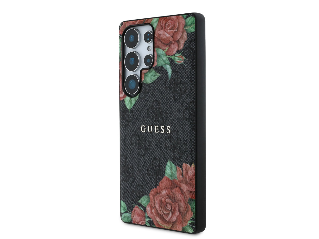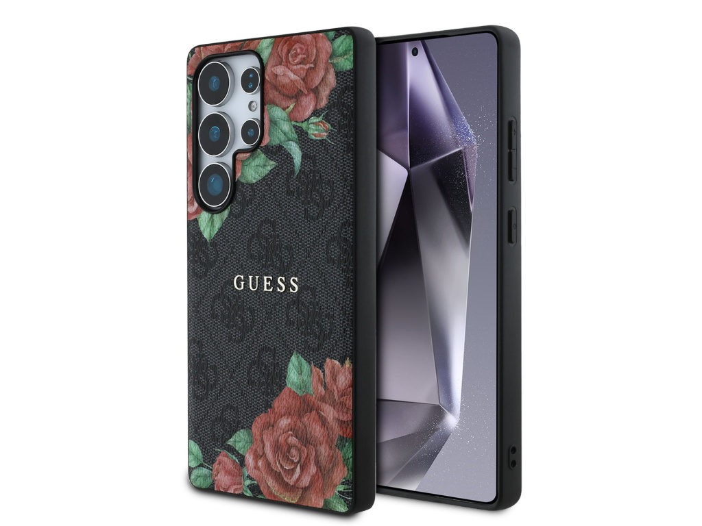 Guess PU Leather 4G Flowers Print Metal Classic Logo MagSafe Zadní Kryt pro Samsung Galaxy S25 Ultra