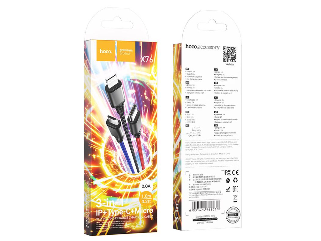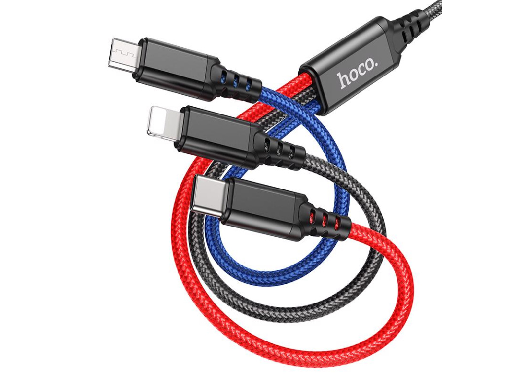 HOCO 3v1 super nabíjecí kabel Lightning+USB-C+MicroUSB