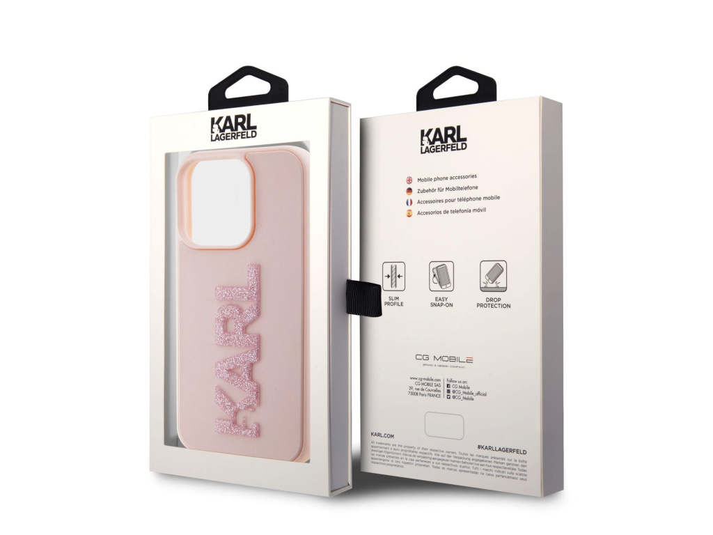 Karl Lagerfeld 3D Rubber Glitter Logo Karl Zadní Kryt pro iPhone 15 Pro Max růžový