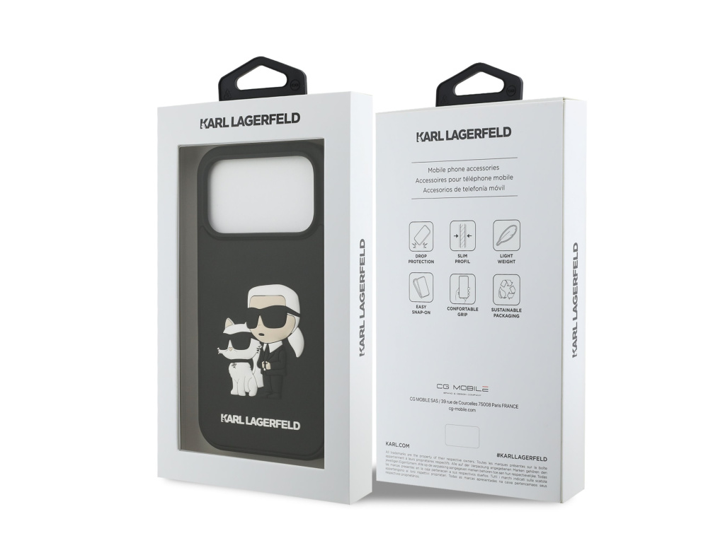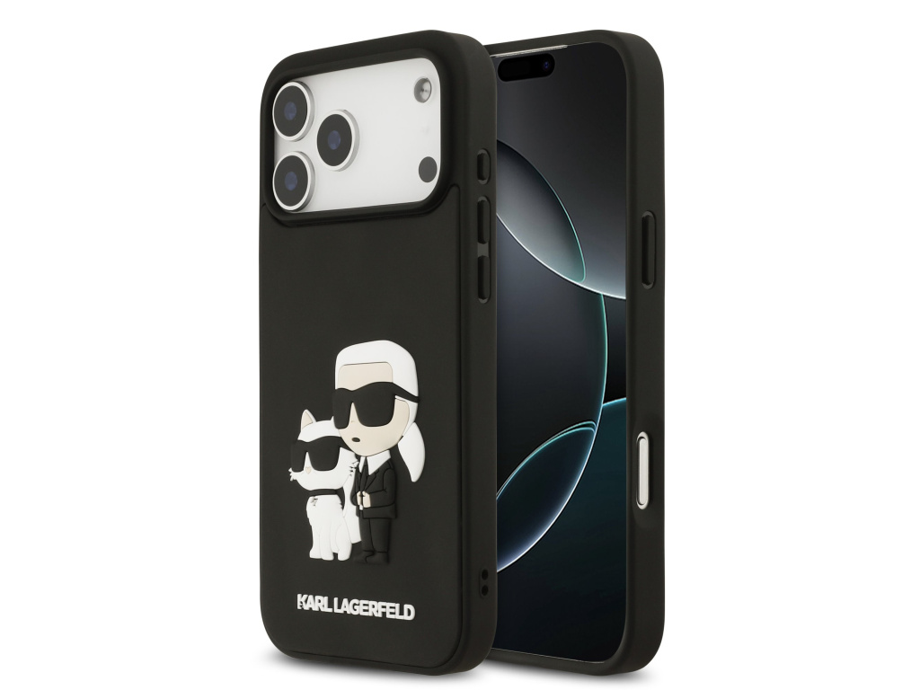 Karl Lagerfeld 3D Rubber Karl and Choupette Zadní Kryt pro iPhone 17 Pro/17 Pro Max černý