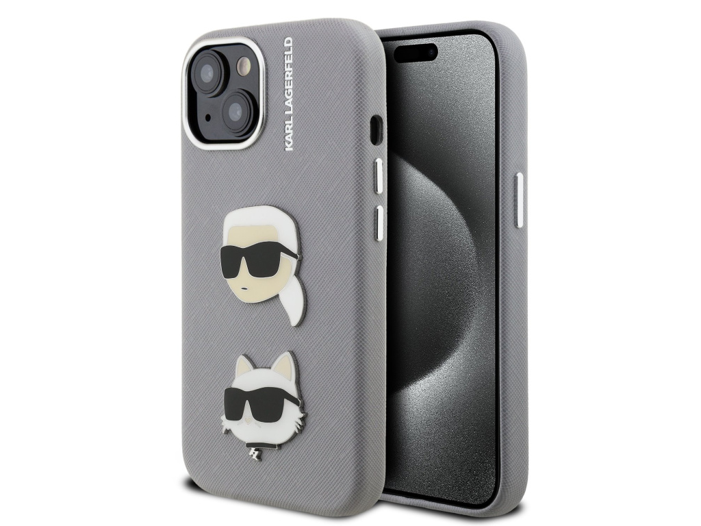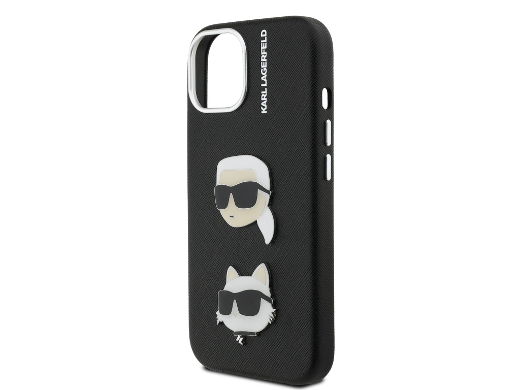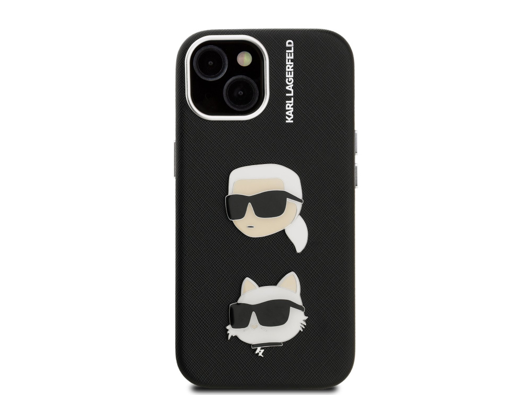 Karl Lagerfeld Grained PU K&CH Heads Zadní Kryt pro iPhone 15
