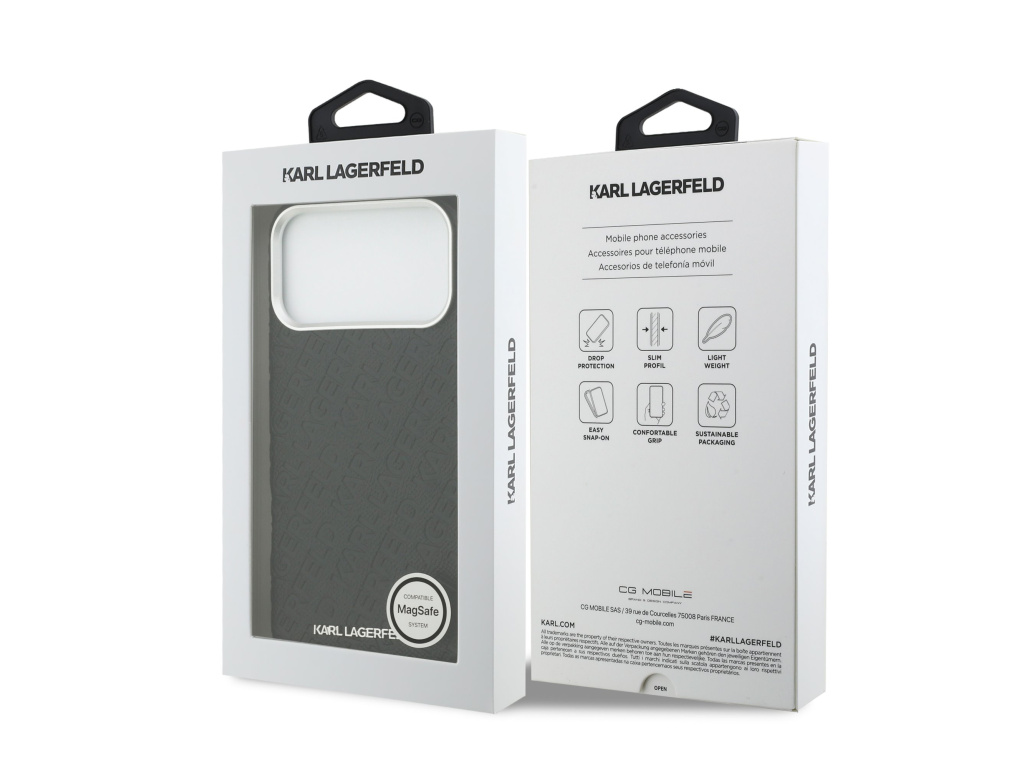 Karl Lagerfeld Grained PU Repeated Logo MagSafe zadní kryt je vyrobený z lehkého a odolného PU s texturou zrnité kůže a nabízí skvělou ochranu a pohodlí při používání.