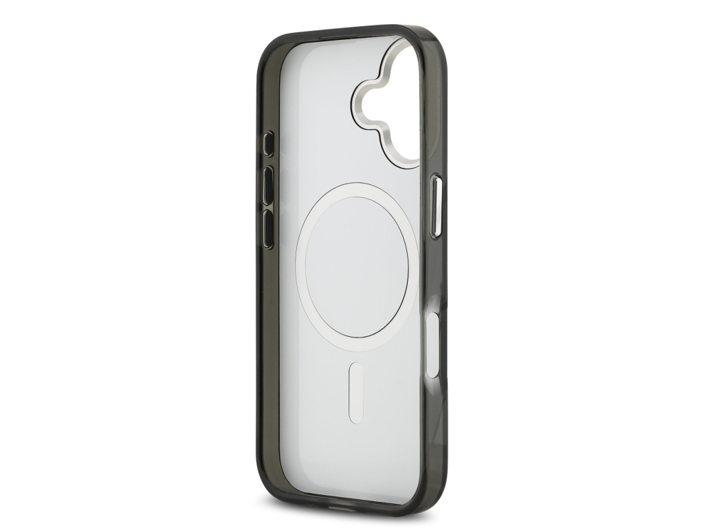 Prémiový ochranný kryt telefonu v kombinaci zadní strany s potažená látkou s motivem Guess, pružnými PU boky a vestavěným magnetem pro Apple MagSafe příslušenství.