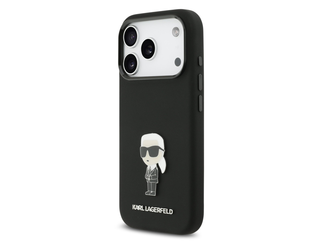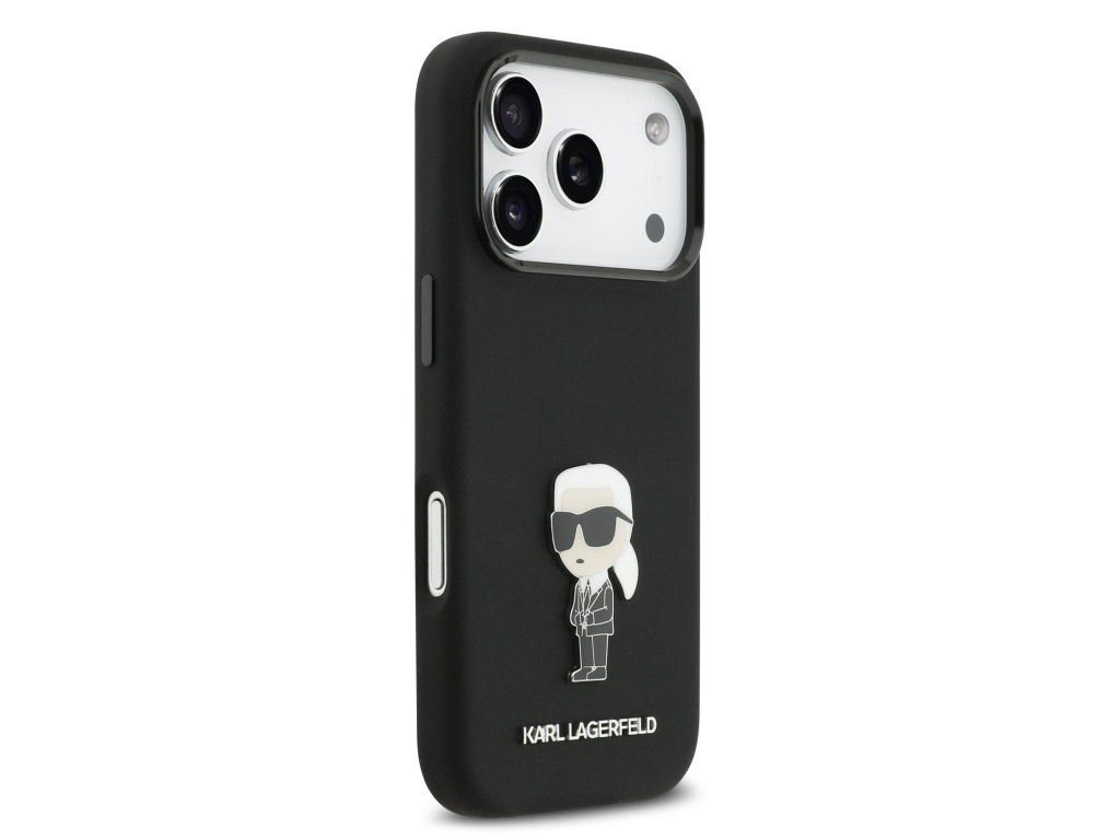 Karl Lagerfeld Liquid Silicone Metal Ikonik Zadní Kryt pro iPhone 17 Pro černý