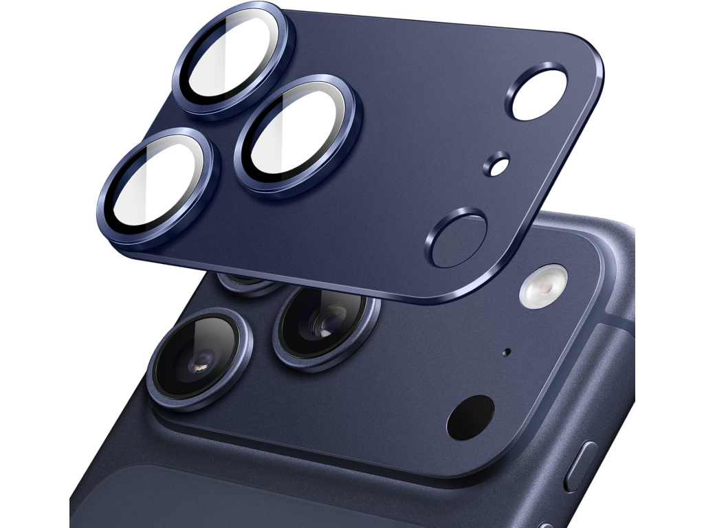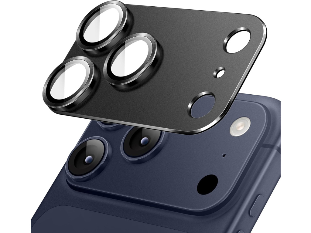 Kovová ochrana fotoaparátu s tvrzeným sklem na čočky pro iPhone 17 Pro