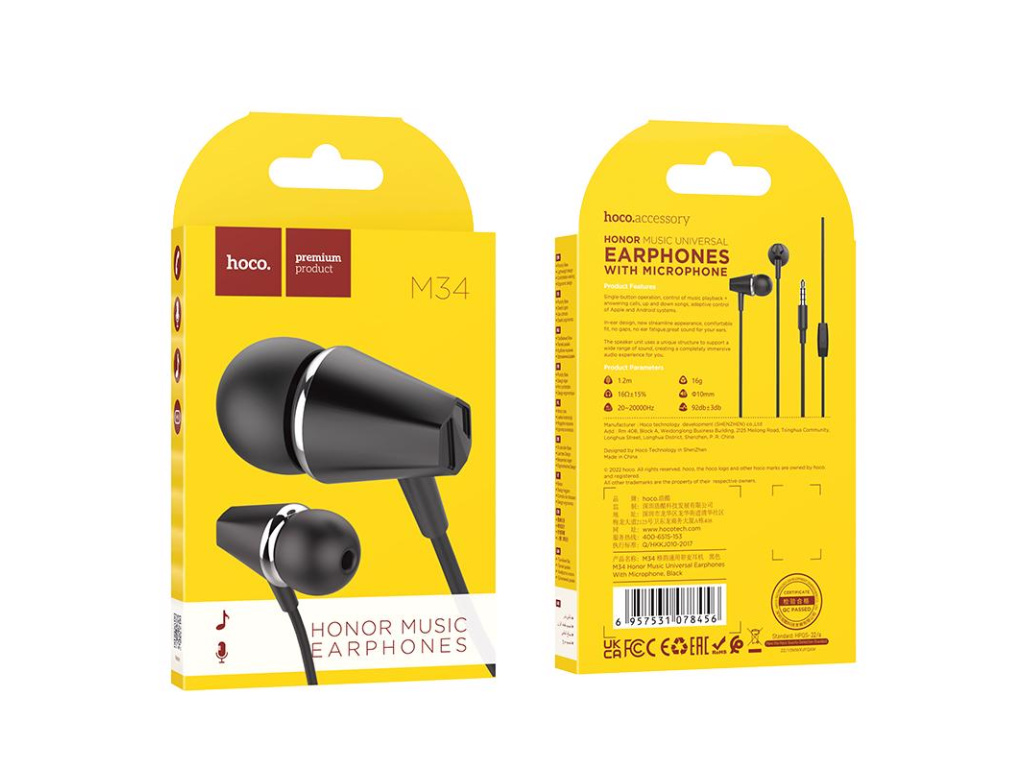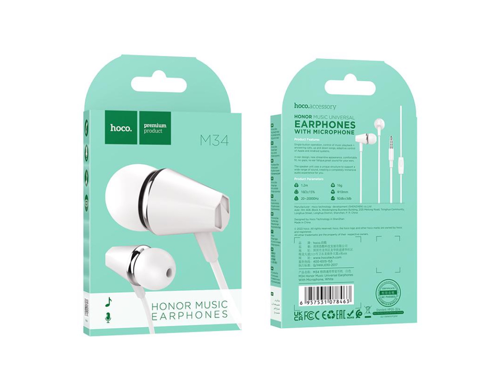 HOCO univerzální sluchátka M34 s mikrofonem 3,5mm jack