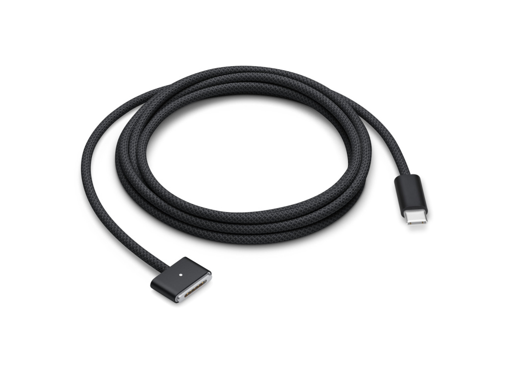 Tenhle dvoumetrový napájecí kabel má magnetický konektor MagSafe 3, který navede zástrčku do napájecího portu MacBooku Pro. Ve spojení s kompatibilním USB-C napájecím adaptérem poslouží k nabíjení MacBooku Pro z elektrické zásuvky. Kabel navíc podporuje rychlé nabíjení. Magnetické připojení je natolik pevné, že zamezí většině nechtěných odpojení. Když ale někdo o kabel zakopne, ten se uvolní, aby MacBook Pro nespadl. Při nabíjení baterie svítí LEDka na konektoru oranžově, při plném nabití svítí zeleně. Kabel je opletený, aby dlouho vydržel.