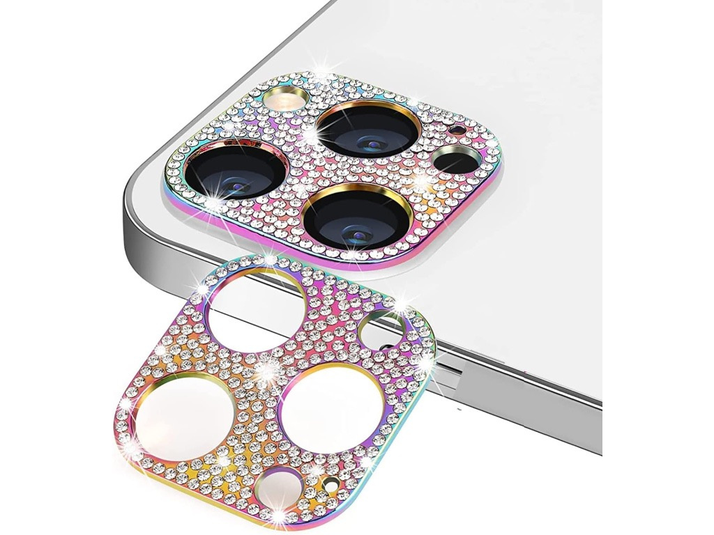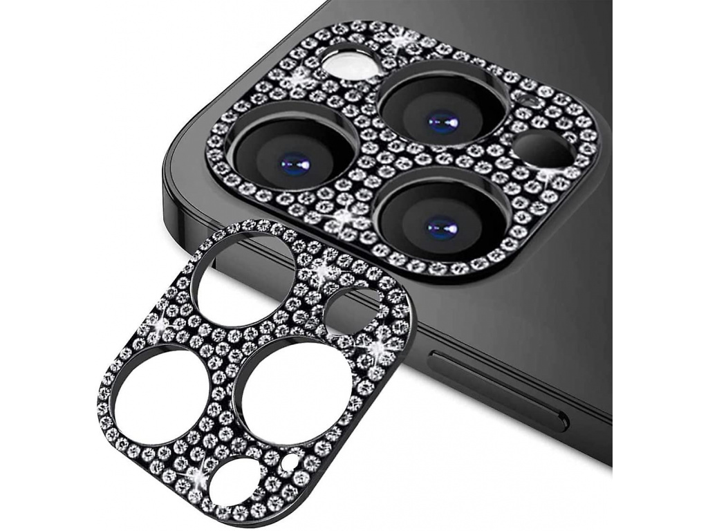 Ochranný kovový kryt na fotoaparát s kamínky pro iPhone 13 PRO MAX