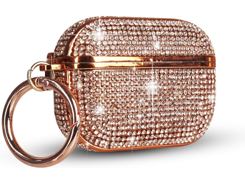 Pouzdro pro Airpods ve stylovém provedení z vysoce kvalitního PC/PU materiálu, pokryté drobnými kamínky.