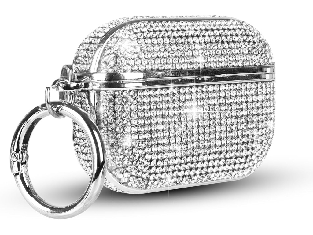 Pouzdro pro Airpods ve stylovém provedení z vysoce kvalitního PC/PU materiálu, pokryté drobnými kamínky.