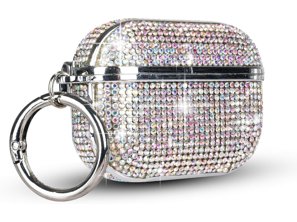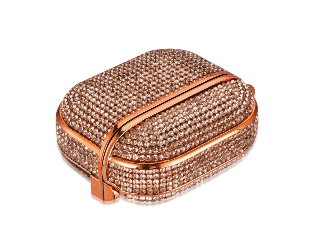 Pouzdro pro Airpods ve stylovém provedení z vysoce kvalitního PC/PU materiálu, pokryté drobnými kamínky.