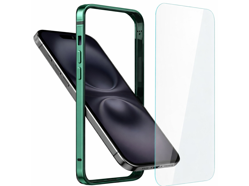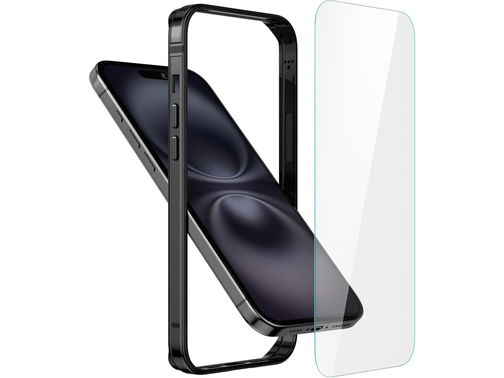 Sada ochranný hliníkový rámeček + prémiové tvrzené sklo na iPhone 16 Plus