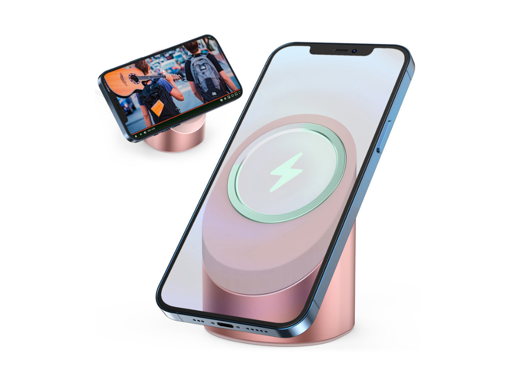 Stojánek je zhotoven v inovativním jednoduchém designu, který vám umožní propojení s bezdrátovou nabíječkou MagSafe během minuty. Váš iPhone poté lze umístit na stojánek ve vertikální i horizontální poloze. Zvolit můžete jakoukoliv jinou polohu v rozmezí 360°. Nyní můžete telefonovat nebo sledovat filmy a současně telefon nabíjet. Vaše ruce přitom zůstanou volné.