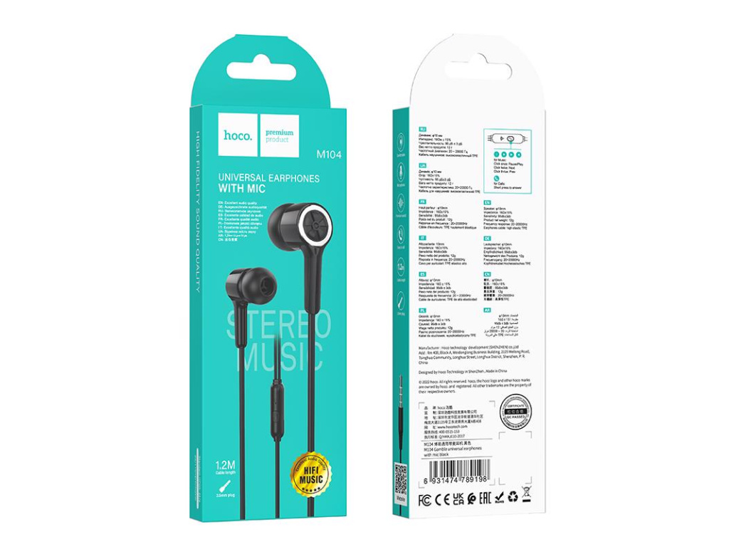 HOCO Univerzální sluchátka s mikrofonem M104 3,5mm jack