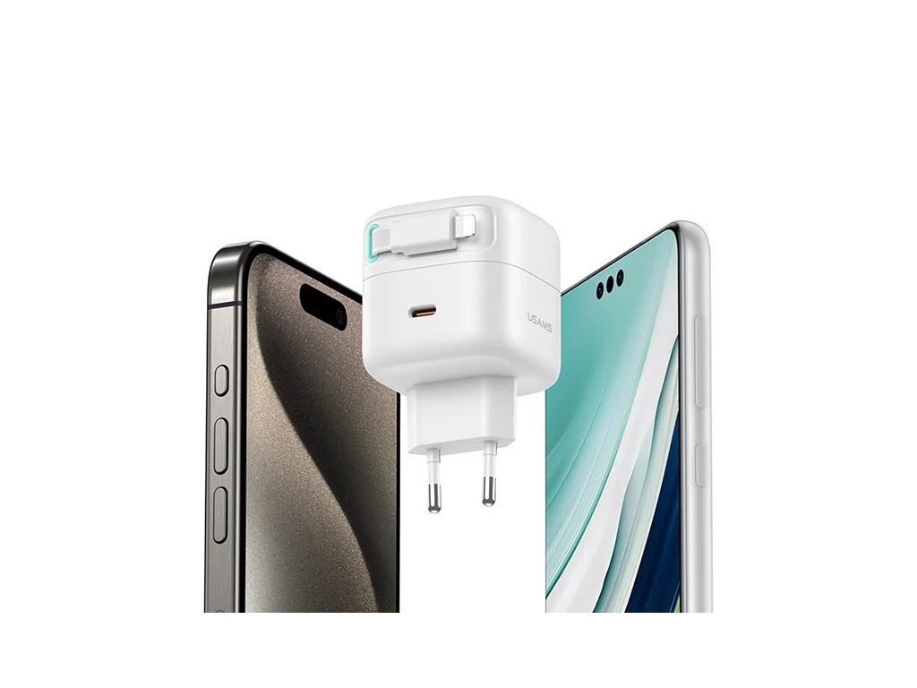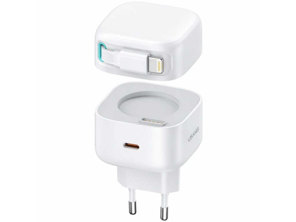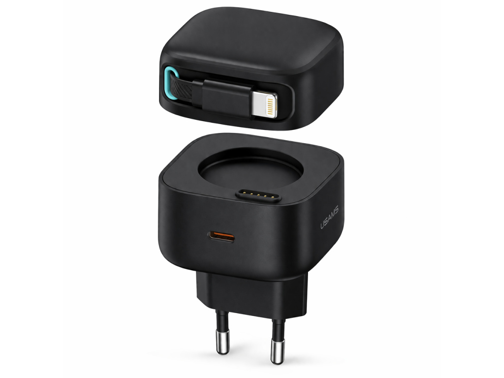 USAMS rychlonabíječka PD35W s dvojitým výstupem GaN a magnetickým zatahovacím kabelem Lightning