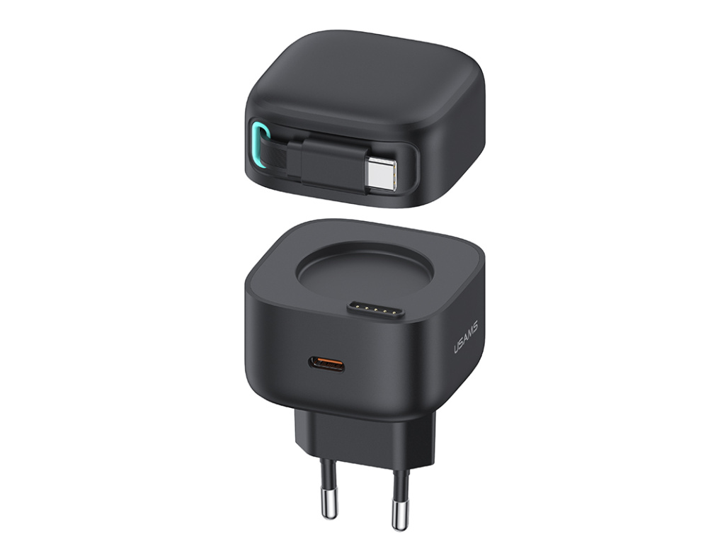 USAMS rychlonabíječka PD35W s dvojitým výstupem GaN a magnetickým zatahovacím kabelovým USB-C